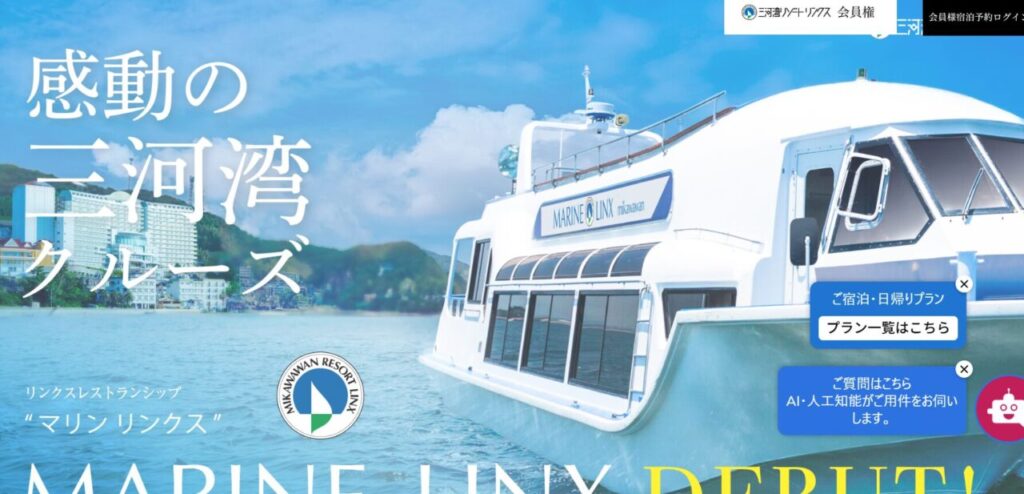 三河湾リゾートリンクス10,000円〜(2名)客室タイプによる西尾市朝日が見える立地・屋内外プール・バイキング・周遊船・送迎あり
