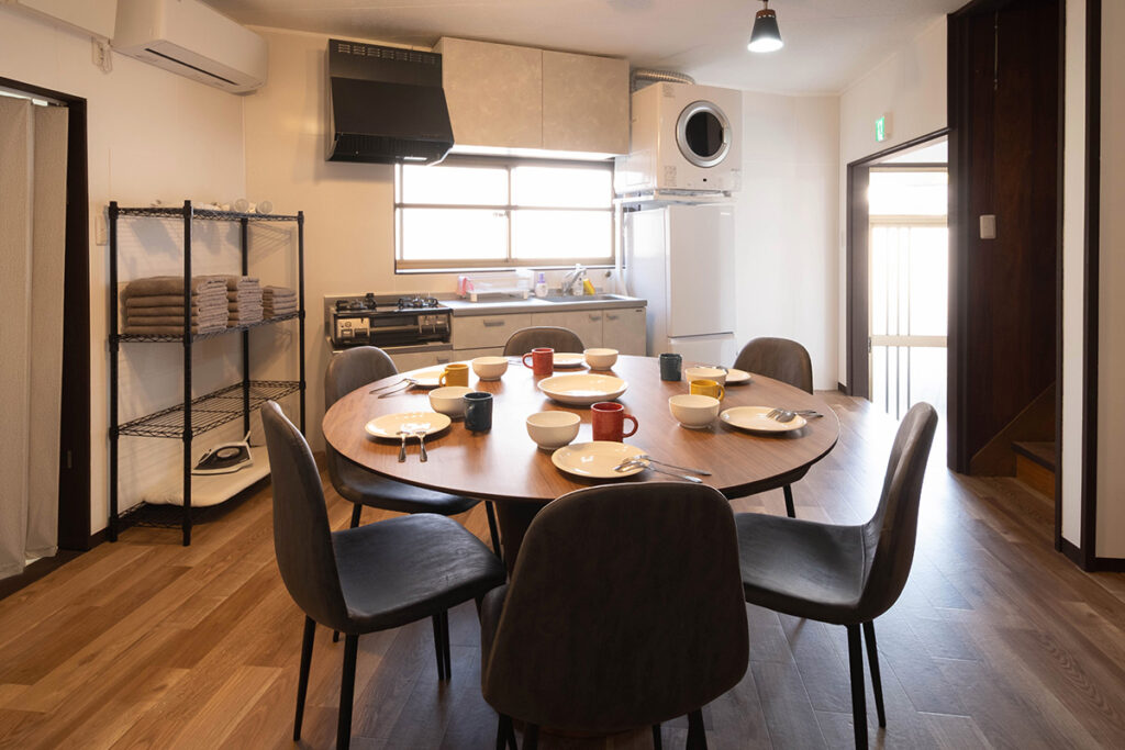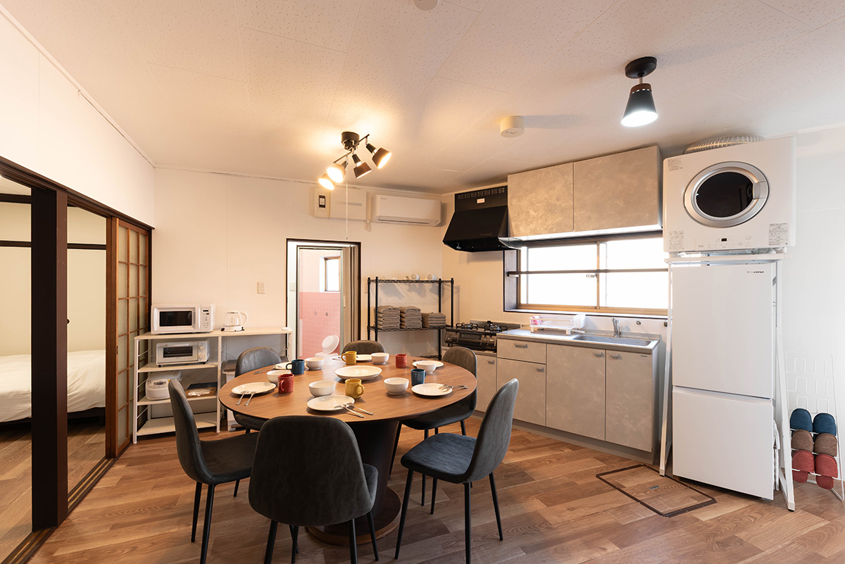 キッチンを使ってお料理をすることも、近くのお店でお食事を楽しむことも可能です。お好みのスタイルでお過ごしください。