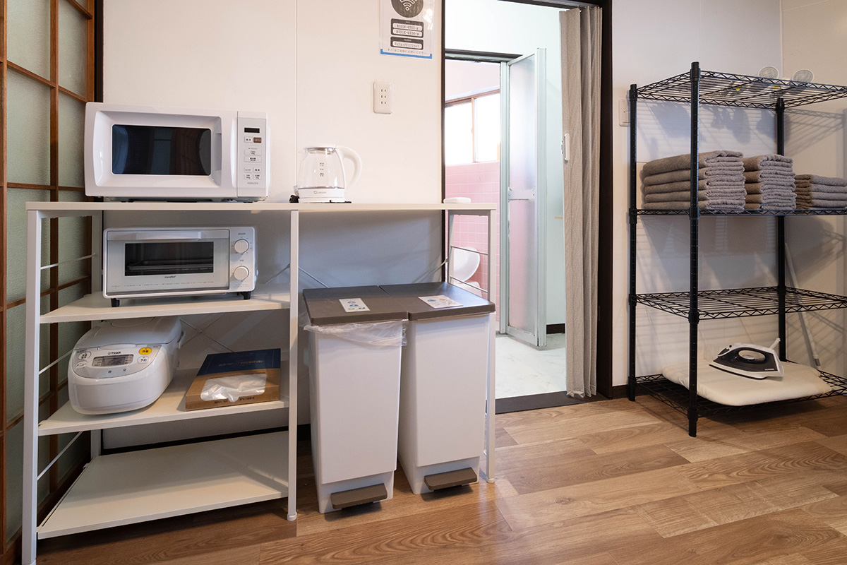 ドライヤーやタオル類、乾燥機付きの全自動洗濯機など、滞在に必要な設備を取り揃えておりますので、快適にお過ごしいただけます。