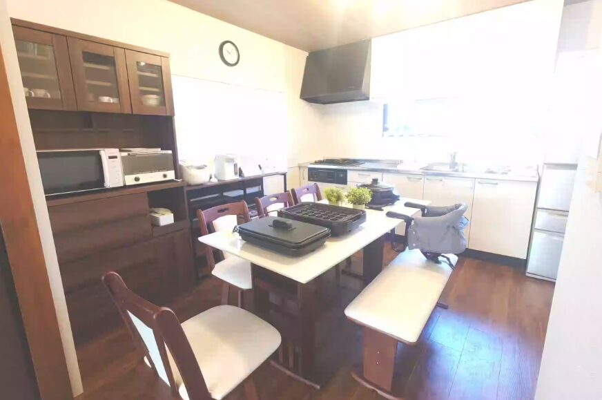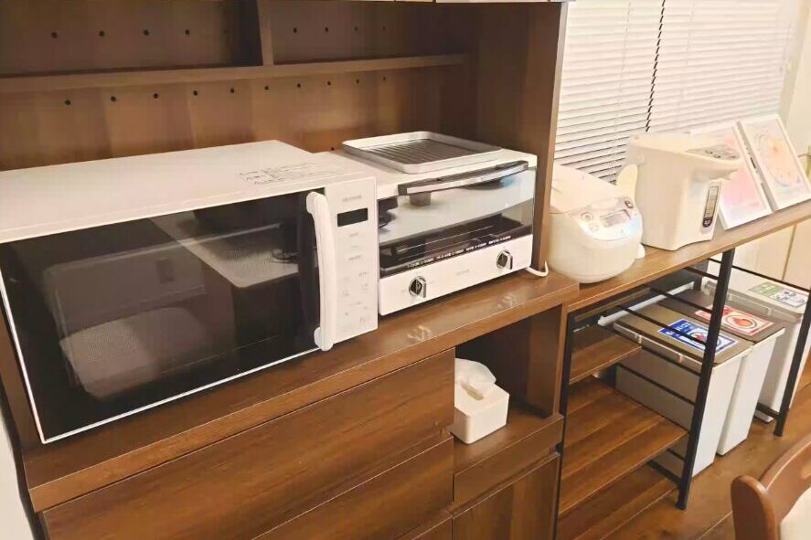 【設備】フリーWi-Fi、全ての部屋にエアコン、冷蔵庫、洗濯乾燥機、電子レンジ、水洗トイレ(ウォシュレット)、炊飯器、電気ケトル、ヘアードライヤー、ホットプレート、オーブン、フライパン、電気グリル鍋、食器類、掃除機