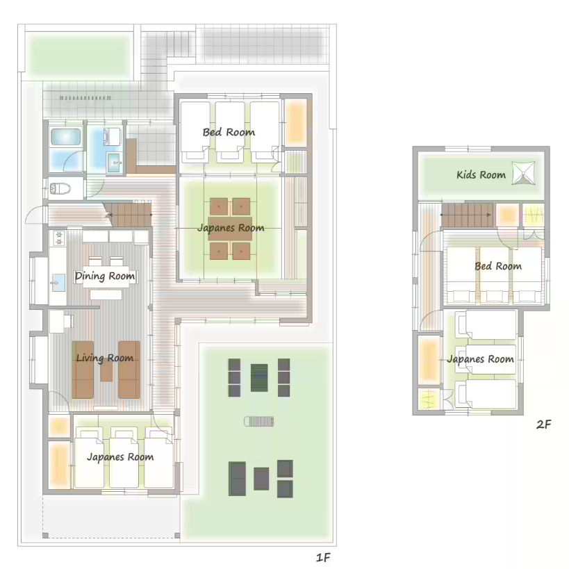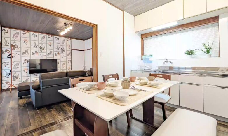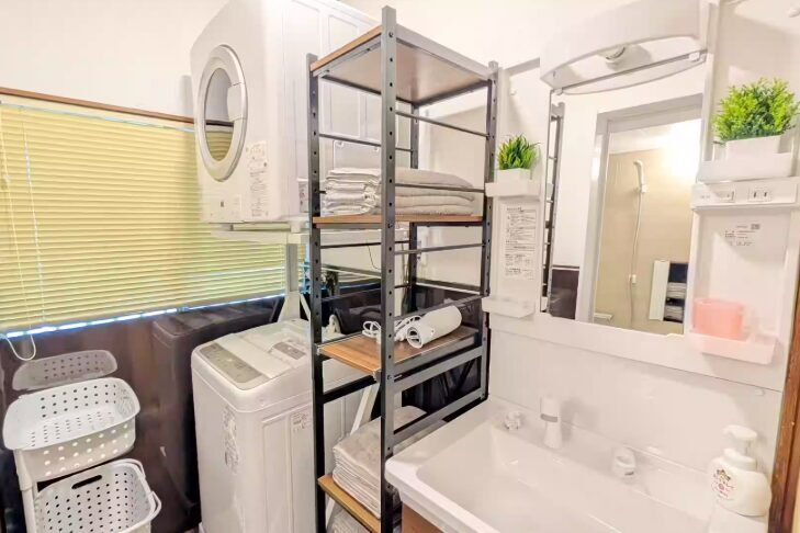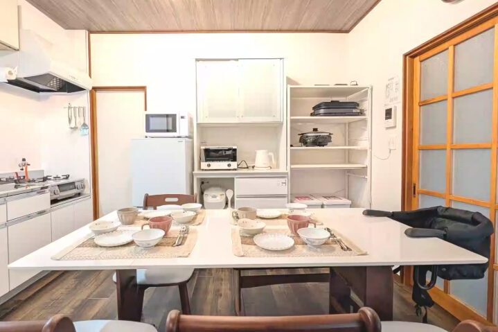 【設備】フリーWi-Fi、全ての部屋にエアコン、冷蔵庫、洗濯乾燥機、電子レンジ、水洗トイレ(ウォシュレット)、炊飯器、電気ケトル、ヘアードライヤー、ホットプレート、オーブン、フライパン、電気グリル鍋、食器類、掃除機