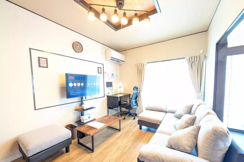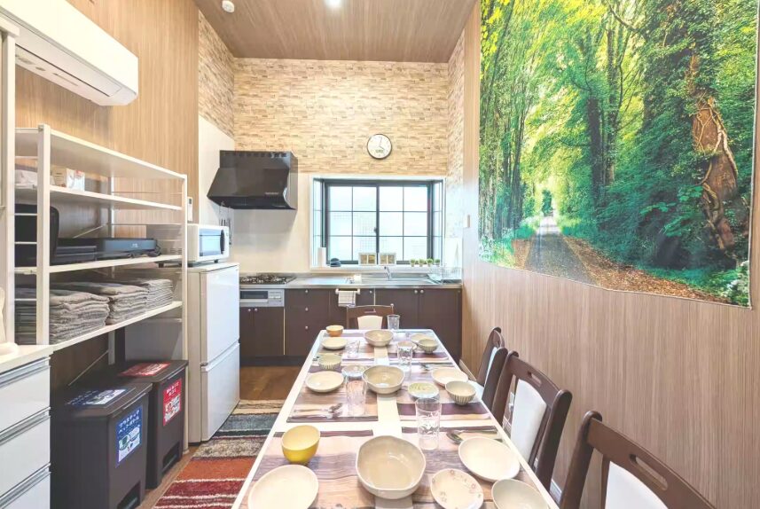 【設備】フリーWi-Fi、全ての部屋にエアコン、冷蔵庫、洗濯乾燥機、電子レンジ、水洗トイレ(ウォシュレット)、炊飯器、電気ケトル、ヘアードライヤー、ホットプレート、オーブン、フライパン、電気グリル鍋、食器類、掃除機