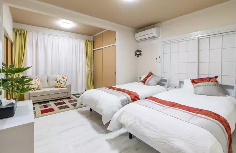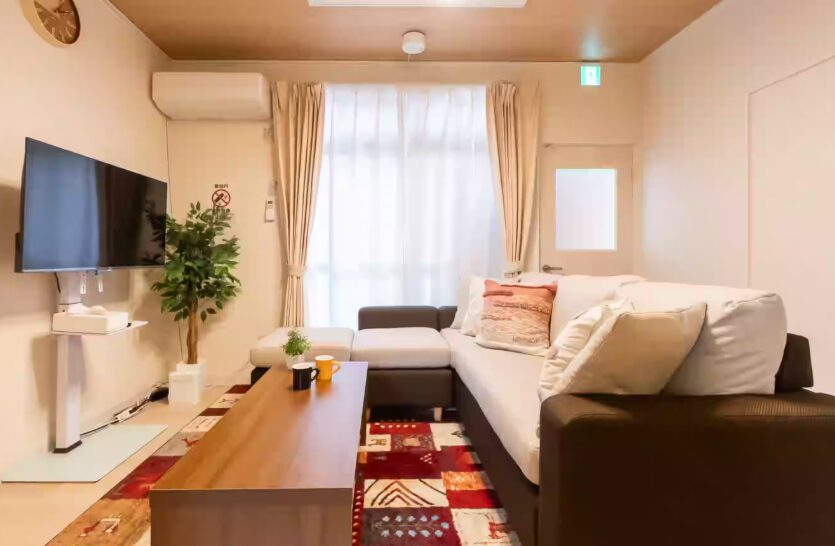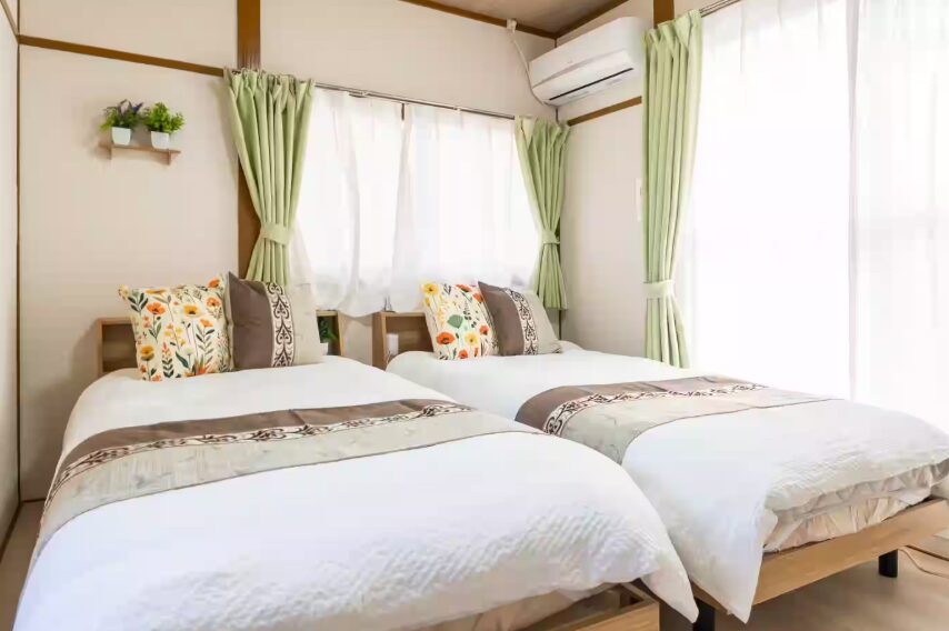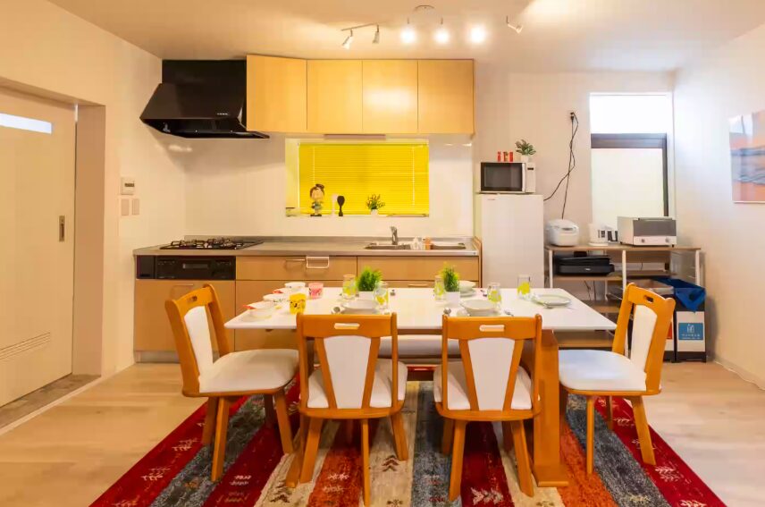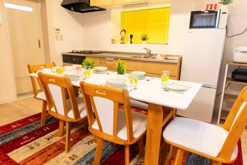 【設備】フリーWi-Fi、全ての部屋にエアコン、冷蔵庫、洗濯乾燥機、電子レンジ、水洗トイレ(ウォシュレット)、炊飯器、電気ケトル、ヘアードライヤー、ホットプレート、オーブン、フライパン、電気グリル鍋、食器類、掃除機