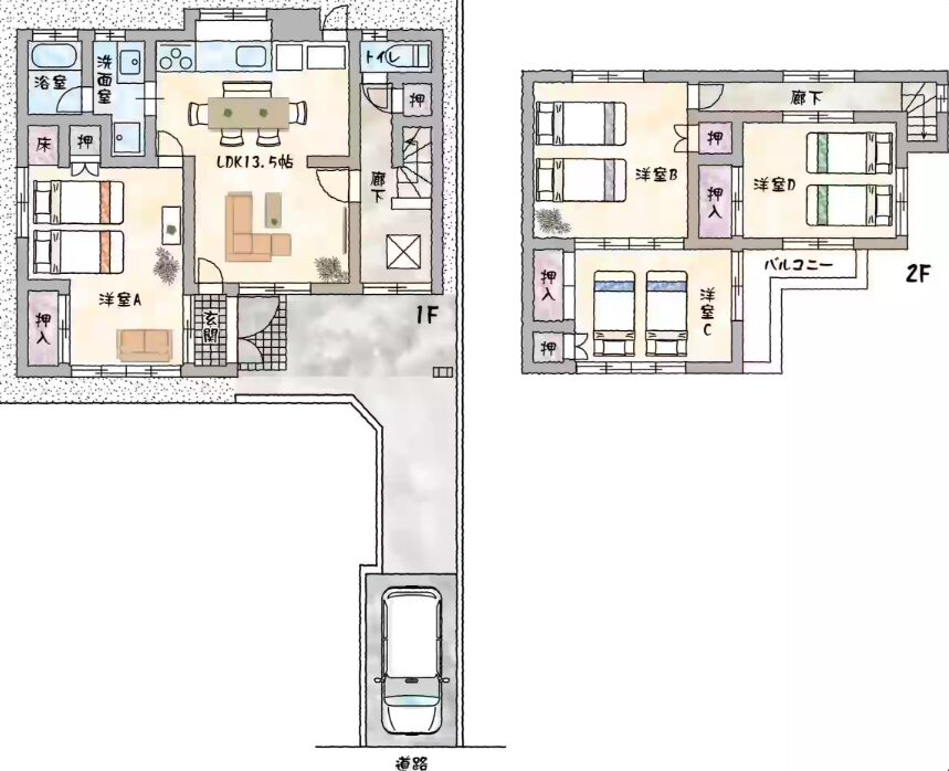 ●大家族、ファミリー、カップル、お友達同士向けの9人まで宿泊可能、無料駐車場2台+敷地内小型車1台