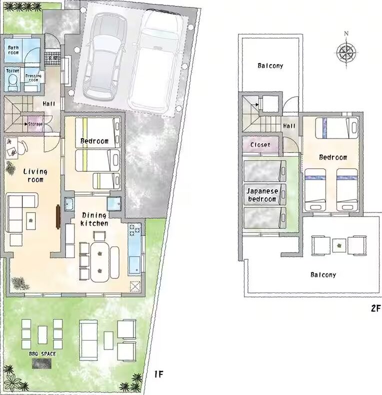 ●大家族、ファミリー、カップル、お友達同士向けの9人まで宿泊可能、無料敷地内駐車場2台。