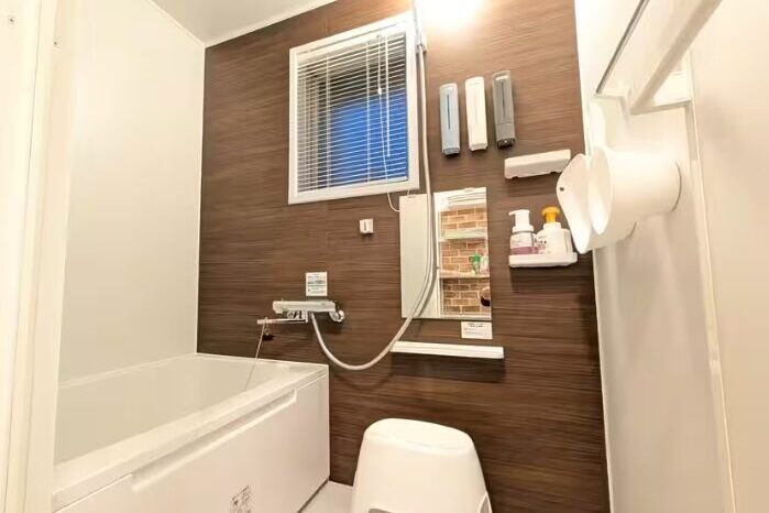 【設備】フリーWi-Fi、全ての部屋にエアコン、冷蔵庫、洗濯乾燥機、電子レンジ、水洗トイレ(ウォシュレット)、炊飯器、電気ケトル、ヘアードライヤー、ホットプレート、オーブン、フライパン、電気グリル鍋、食器類、掃除機