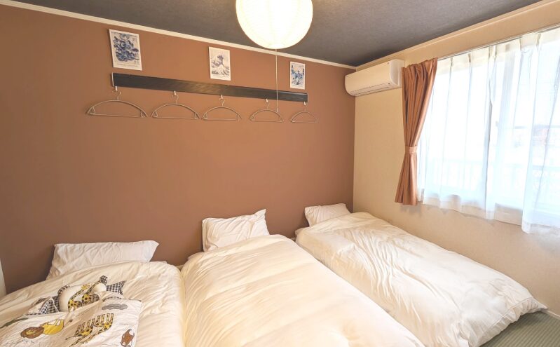 寝室2、シングルベッド × 2、マットレス+敷布団 ×3