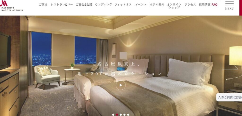 名古屋駅の真上、地上200mを超える高層階にフロントを構える名古屋マリオットアソシアホテルは、アクセスの良さにおいて、名古屋随一のホテルです。