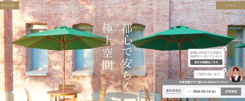 | 公式サイト | https://www.vessel-hotel.jp/campana/nagoya/ |